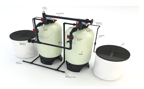 5.占地面積小:只需為樹脂罐和鹽罐提供空間,節省管道和鹽泵的空間。