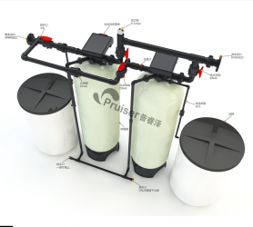 全自動(dòng)軟水器由多路控制閥、樹脂罐、鹽箱及管路系統(tǒng)等部件組成。其性能又分為時(shí)間再生型和流量再生型。時(shí)間再生型軟水器即在設(shè)定運(yùn)行時(shí)間結(jié)束時(shí),自動(dòng)進(jìn)入樹脂再生工藝;流量再生型軟水器即為設(shè)定流量結(jié)束時(shí),進(jìn)入樹脂再生工藝。流量型則會(huì)配備流量計(jì)來計(jì)算軟化水的流量,在一些不是持續(xù)工作的工況上,能減少再生的次數(shù),讓數(shù)據(jù)更精準(zhǔn)。